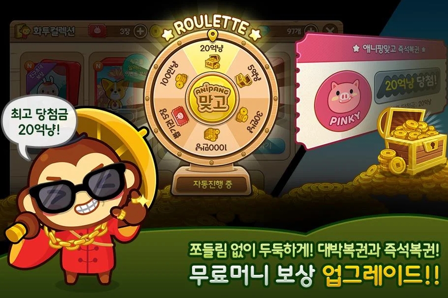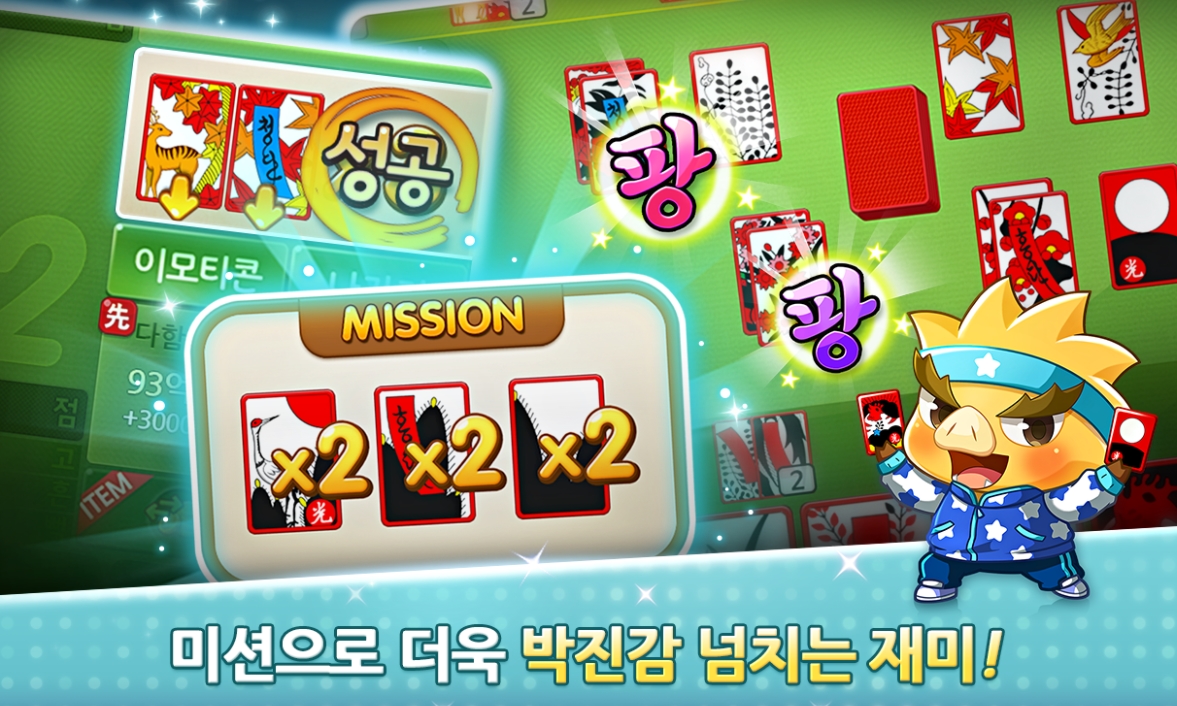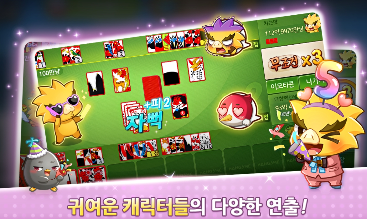 많은 사랑을 받았던 애니팡 캐릭터로 귀엽고 재미있게 게임 플레이를 할 수 있으며, 시즌2에서는 한눈에 쏙 들어오는 심플한 인터페이스로 게임의 재미를 높였다고 합니다. 뽑기권으로 귀여운 애니팡 캐릭터 화투를 모으면 게임 혜택도 더불어 가져갈 수 있습니다.