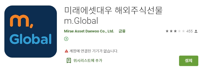 1) 플레이스토어나 앱스토어에서 미래에셋 대우 m.Global을 다운로드합니다.
