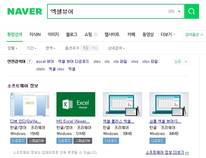 두번째 엑셀뷰어로 검색을 하신경우에는 바로 다운로드 화면으로 이동하실 수가 있습니다. 편하신 데로 하시면 되고 네이버 자료실을 들어가서 받느냐 바로 엑셀뷰어를 검색하서 받느냐의 차이지 이하 방법은 동일합니다.