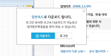 MS Excel Viewer를 클릭하시면 그림 옆 오른쪽에 무료 다운로드 버튼이 뜰거구요. 그걸 클릭해주시면 "일반속도로 다운로드됩니다" 라는 알림문구와 함께 다운로드 창이 뜰겁니다. 네이버에 로그인을 하느냐 안 하느냐에 따라 일반속도와 빠른 속도로 나뉘는데 귀찮으시면 로그인 없이 그냥 일반 속도로 다운로드를 해주시면 됩니다.