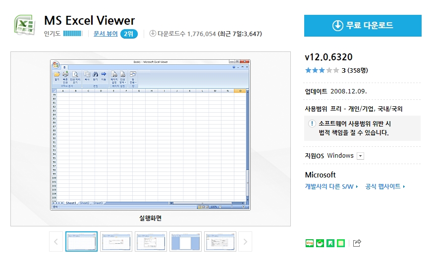 엑셀뷰어는 편집된 문서를 확인하거나 출력할 때 아주 유용하게 쓰이는 프로그램입니다. 게다가 문서 작성, 수정을 위한 엑셀 프로그램은 값을 치루고 구매해야하지만 뷰어만은 무료로 다운로드가 가능하기 때문에 부담없이 사용할 수도 있구요.