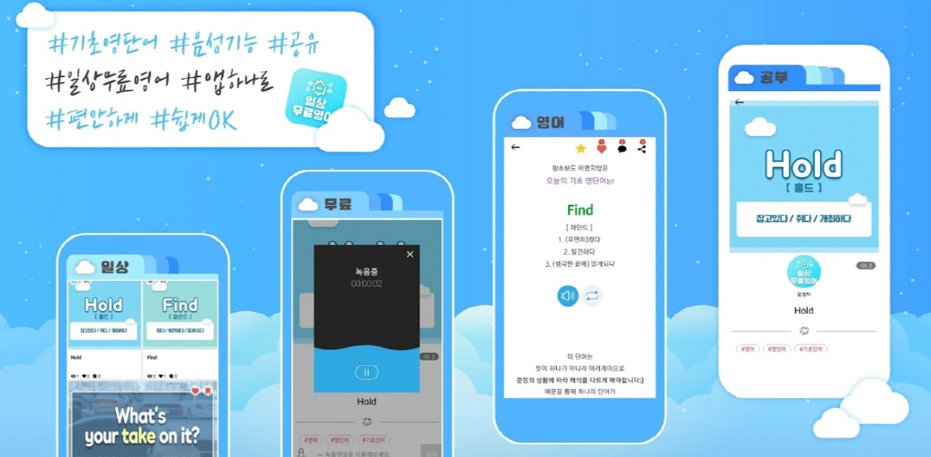 이제 영어공부를 시작하려는 초보자분들, 즉 초등생, 아주머니, 장년, 노인분들을 위한 맞춤형 영어 어플이라고 보시면 될 듯합니다. 물론 영어를 잘 아시는 분들도 복습 차원에서 영어단어와 영어패턴, 일상회화 등을 매일 받아보면서 재 학습하실 수도 있고요.