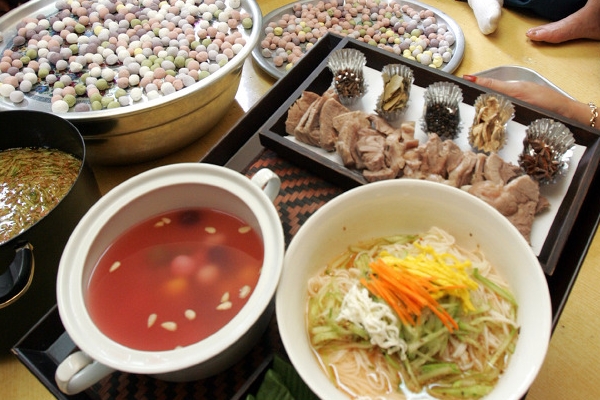모양은 지금의 길다란 국수와 매우 다르며, 잡귀의 출입을 막고 나쁜 액을 쫓기 위한 행동이었다고 합니다. 이러한 풍속은 현재 전해지지 않으나, 오늘날까지도 유두날에 밀국수를 만들어 먹으면 더위를 타지 않는다는 속설이 남아 있습니다.