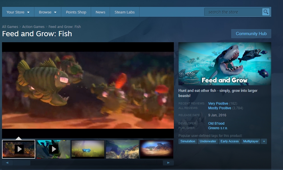 초기 작은 물고기일때도 스릴감 있어 매우 재미있답니다. 바닷속을 탐험하면서 피하고 싸우면서 성장해 나가는 게임으로 약간 혐오스러운 장면이 나올 수도 있지만 그래픽일 뿐이니 너무 겁먹지 않으셔도 됩니다.